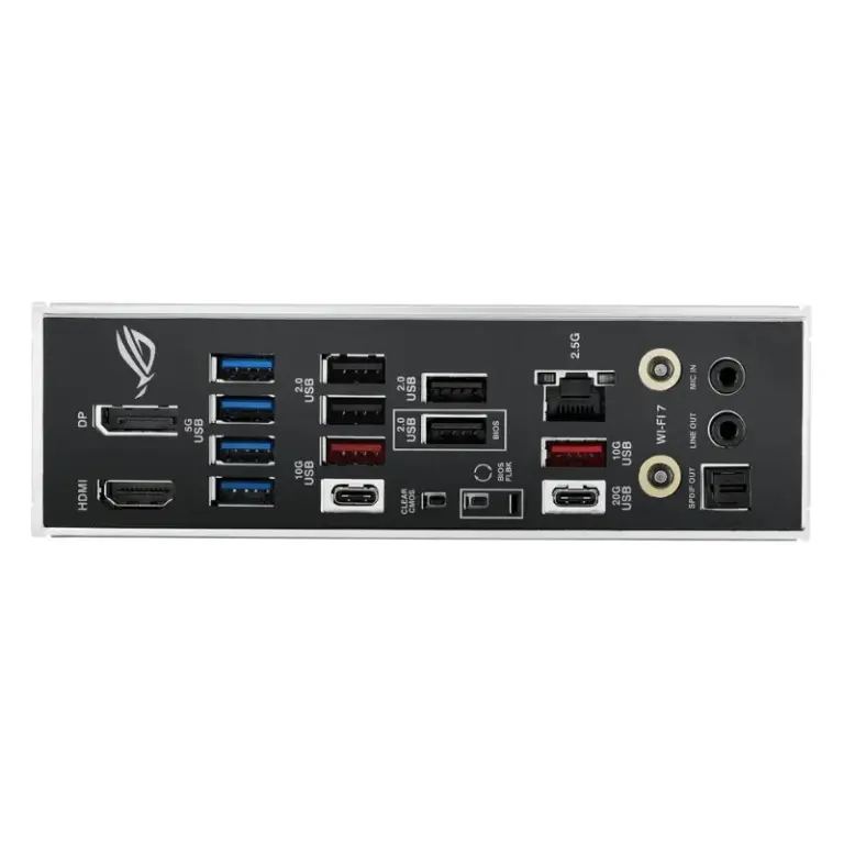 - Ports d’E/S du panneau arrière: 1x USB 20 Gbit/s -1x port USB-C -3x USB 10 Gbit/s -2x ports Type-A + 1 port USB Type-C) 4 ports USB 5 Gbit/s (4 ports Type-A) 4 ports USB 2.0 (4 ports Type-A) -2x audio -1 sortie optique S/PDIF