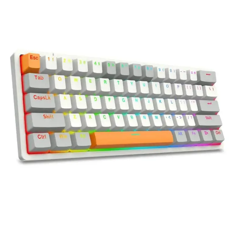 Connectivité: Filaire – Interface avec l’ordinateur: USB Type C – 61 Boutons – Anti-Ghosting – Rétroéclairage RVB – Entièrement configurable via des macros et des raccourcis clavier -Design ergonomique avec disposition en escalier des touches pour un confort accru – Dimensions: 29,7 x 10,7 x 3,6 cm