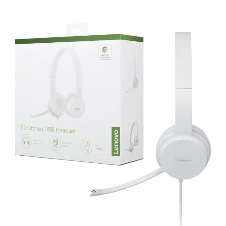 - Micro Casque Lenovo 110 – Connectivité : Filaire – Interface : USB – Sensibilité : 16 ±/-3 dB – Impédance : 32Ω – Diamètre du haut-parleur 30 mm – Oreillettes en cuir et en mousse à mémoire de forme pour un grand confort tout au long de la journée – Fréquence : 20Hz – 20KHz – Microphone à 180 degrés – Plug and Play avec USB-A – Longueur du câble : 1.8 m