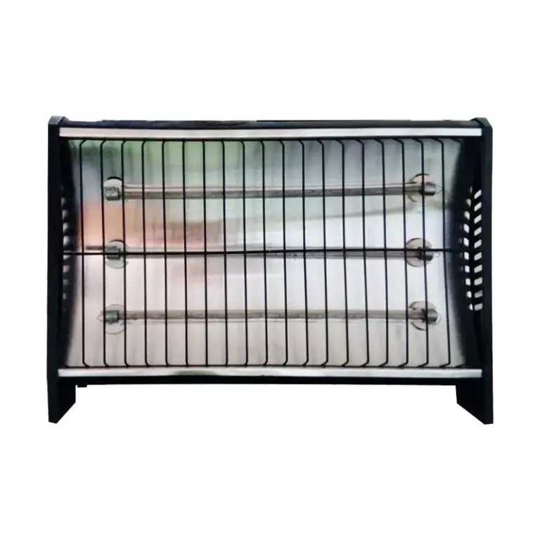 Puissance: 2100 Watts – Nombre de Tube: 3 tubes – Thermostat réglable – Réflecteur inox résistant à la haute température – Protection avec une grille de faible maillage – Corps en tôle anti-corrosive – Appareils légers et facilement transportables Puissances de chauffage – Alimentation: 220-230 V / 50 Hz – Couleur: Noir