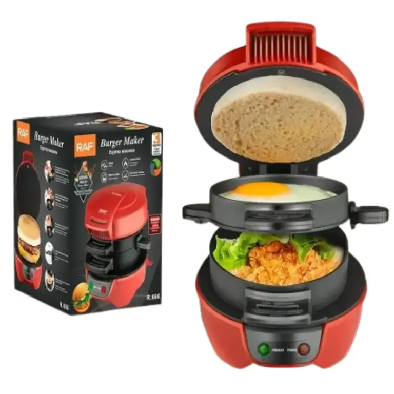 Raf R666 Machine à hamburger 600W, revêtement antiadhésif Cuisson simultanée de l’œuf, de la garniture et des petits pains,