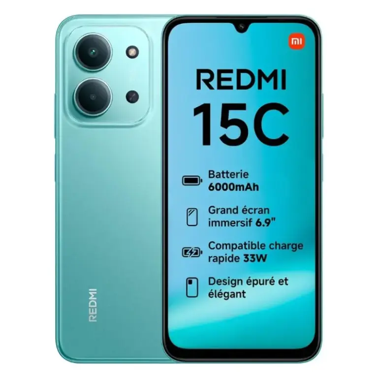Xiaomi Redmi 15C, un smartphone puissant avec 4 Go de RAM et 128 Go de stockage, parfait pour tous vos besoins numériques. Capturez des moments inoubliables grâce à sa double caméra AI de 50 MP, qui vous garantit des photos d’une clarté exceptionnelle. Avec sa batterie massive de 6000 mAh, profitez d’une autonomie prolongée toute la journée.